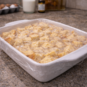 Preparing the dish the night before allows the custard to fully soak into the bread.