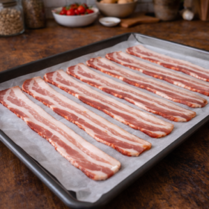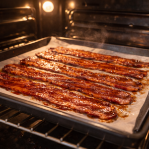 • Using the oven instead of a pan helps cook the bacon evenly.