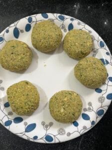 - Grease your hands with ghee and to prep for making falafels.