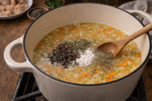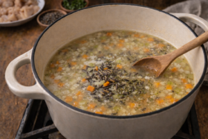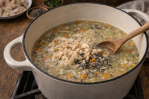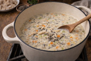 The first time I tasted it, I remember how thick and comforting it felt — creamy but not overly heavy, full of tender chicken, soft vegetables, and nutty wild rice. It had that perfect balance where every spoonful felt warm and satisfying.