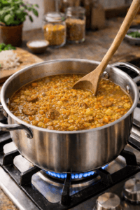 - Lower the heat and let it cook for 25–30 minutes until lentils are soft.