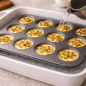 - Place your muffin tray inside a larger baking dish.
