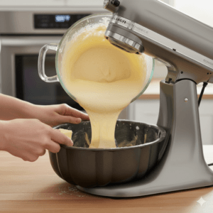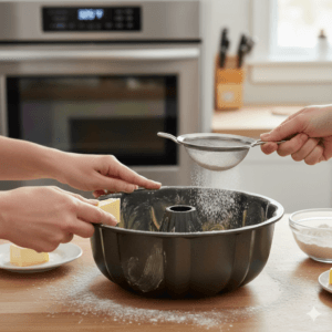 - Preheat your oven to 325°F (160°C). Grease and flour your baking pan well.