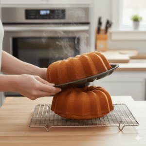 - Let the cake cool in the pan for 15 minutes.