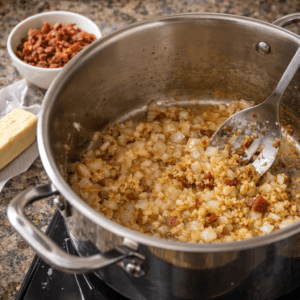 5. Add butter, then onions. Cook until slightly golden—not just soft.