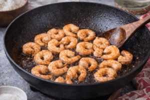 - In the same pan, add shrimp. Cook for 2–3 minutes until pink. Remove and keep aside.