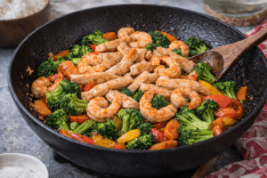 In the same pan, add shrimp. Cook for 2–3 minutes until pink. Remove and keep aside.
